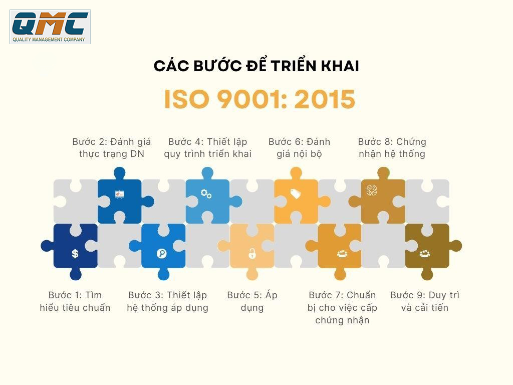 ● Bước 4: Thiết lập quy trình triển khai theo sát hệ thống được thiết lập ở bước trước đó. Đây là khâu quan trọng, đòi hỏi doanh nghiệp dành nhiều sức lực để thiết lập. Sau khi đã xác định được quy trình, tổ chức cần ban hành văn bản hoặc cẩm nang hệ thống chất lượng theo ISO 9001 dành riêng cho mình.