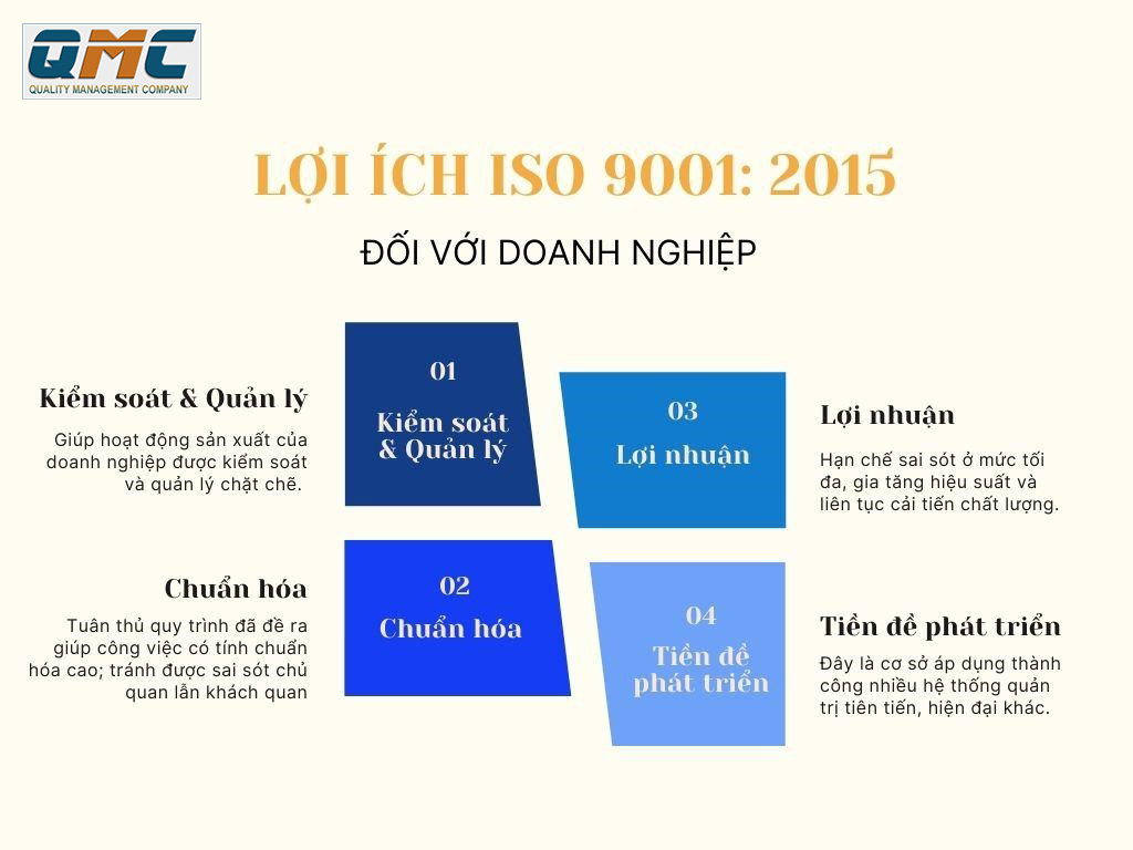 - Áp dụng tiêu chuẩn ISO 9001:2015 giúp hoạt động sản xuất của doanh nghiệp được kiểm soát và quản lý chặt chẽ.